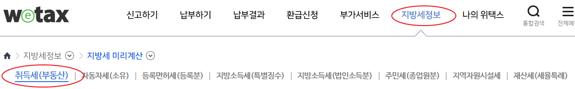 취득세 신고 및 납부는 위택스 홈페이지에서 신고 및 납부할 수 있습니다.