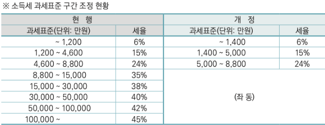 연봉이 5,000만원이라고 가정했을 때, 2023년부터 종합소득세 과세표준 구간이 일부 상향조정되면서 세금이 최대 59만 4천 원 감소하게 되었습니다.